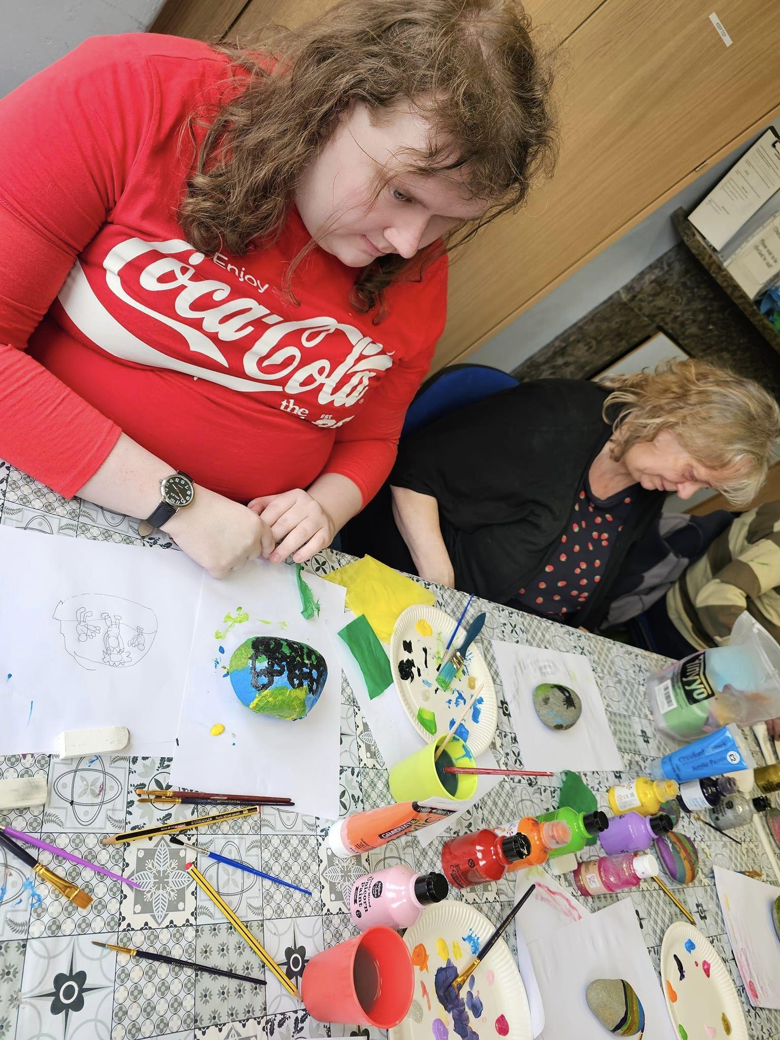 🖌Dive into creativity at the Llandudno Museum with today’s exhilarating pebble painting session alongside the Conwy Connect group! Laughter filled the air as participants unleashed their imagination, turning ordinary pebbles into vibrant works of art.
