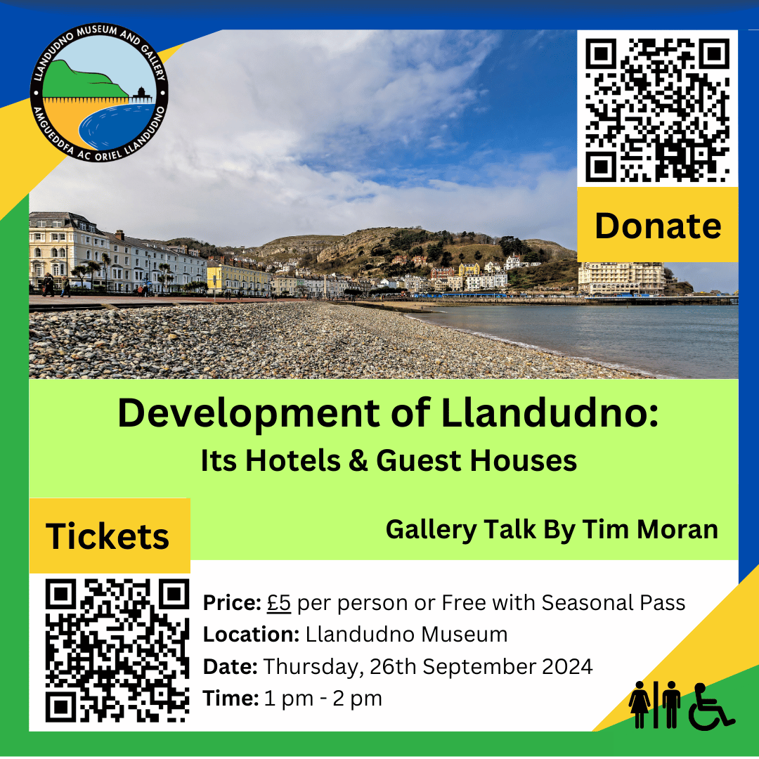 Tickets are £5 per person, or free with a seasonal pass. Don’t miss this opportunity to deepen your understanding of Llandudno’s development through the lens of its historic accommodations!